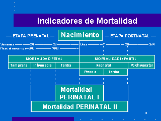 comunmente utilizados en salud materno infantil. A modo de ejemplo, la tasa de mortalidad infantil es igual a la cantidad de niños fallecidos menores de un año con relaciön al total de nacidos vivos ocurridos durante el mismo período o también la tasa de mortalidad infantil resulta de la suma de la tasa de mortalidad neonatal precoz, la tasa de mortalidad neonatal tardía y la tasa de mortalidad postneonatal. |