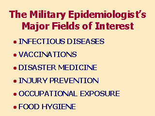 occupational medicine specialists and food hygienists. The following slides will take a closer look at a few of the military epidemiologists pet themes.