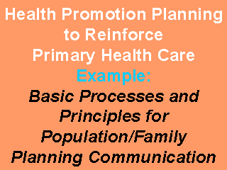 is a step-to-step guide for effective communication projects for behavior change. The steps are: Analysis Design Development, Pretesting and Revision Implementation, Monitoring and Assessment Review and Replanning Continuity over Time |