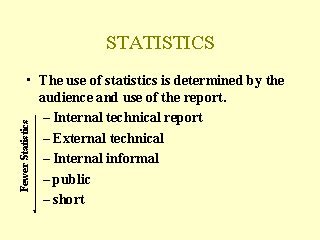 The more technical and formal a report, the greater should be your use of statistics, and the development of the rational of your analysis.