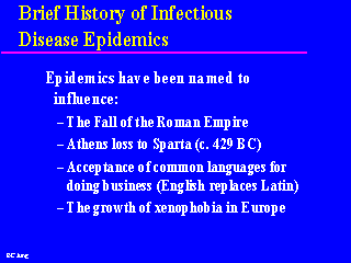 | Politics and personalities aside, infectious diseases played a major role in the recorded history of the world. Modus operandi - decimating populations throughout the centuries. |