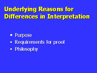 There are several underlying differences between science and the law that are fundamental to understanding the differences in interpretations of probability of causation. These include differences in ultimate purpose and objectives, requirements for proof, reasoning processes and philosophies. |