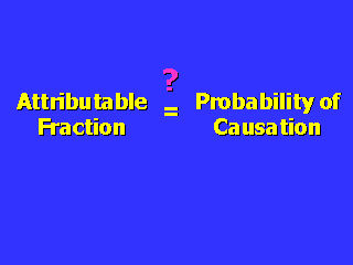 Attributable fraction is often used to infer proportion of disease that can be explained by (attributed to) a given exposure. Probability of causation is required by the courts in assessing liability. It is tempting to use attributable fraction to quantify probability of causation when, in fact, attributable fraction is not a distinct measure. |
