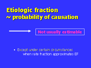 If by asking, What is the 'attributable fraction' ?, we mean: What is the proportion of cases that are caused by (or due to, or attributable to) the exposure? then the correct use of the attributable fraction is the etiologic fraction. The etiologic fraction, however, is not usually estimable without a biologic mechanism. |