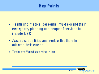 - Hospitals must be prepared to expand their scope of services in order to treat victims of an NBC weapon attack. This will require hospitals to stockpile certain antidotes, provide various levels of PPE, and commit to training appropriate staff. Special teams may need to be assembled that have unique knowledge and training in NBC weapons, decontamination, and antidote therapy. In some circumstances, these individuals may be called upon to interact with local response teams [such as HMRTs and metropolitan medical strike teams (MMSTs)] at the incident site. Together, the roles and responsibilities of these emergency care providers fall under the auspices of the local Incident Command System.