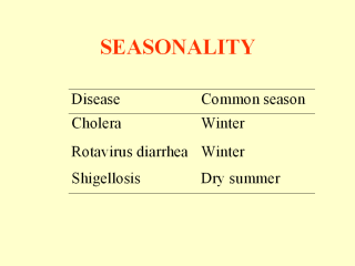 Although diarrhea occurs in any time of the year, outbreak of diarrhea usually follows a seasonal pattern in most developing countries.