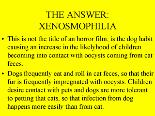 - Xenosmophilia comes from greek/latin and means literally:”Inclination to foreign smells”. It is due to the dog instinct to get a “camouflage scent”.