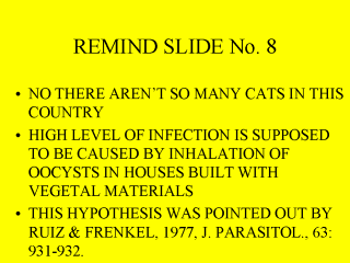 - The seroprevalence of toxoplasmosis in Costa Rica or Guatemala are similar to Paris, but undercooked meat is not a common meal in Central America.