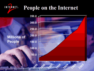 This chart shows the rapid rise in the number of people using the Internet. The projected figures are probably conservative.
