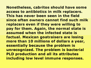 | The concept of treatment to gain eradication is promoted. Once the first clean corral is inhabited by disease-free goats, eradication can radiate from there. |