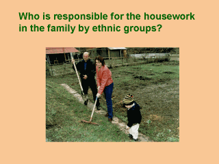 ethnic groups. The column totals may exceed 100% since multiple responses were possible). Kazakh men as well as representatives of other Asian ethnic groups are said to spend less time doing housework than representatives of other nationalities, irrespective of settlement type. Conversely, more Kazakh men (as well as men of other ethnic groups) in urban areas tend to do more of certain housework when compared to men from rural areas. |