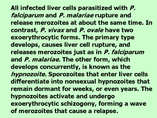 be completed if it is to become infective. Why are sporozoites so very important? Because they invade both mosquito salivary glands and human hepatocytes. Their invasiveness then makes them a target antigen. |
