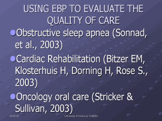These studies used EBP to determine treatment modalities and develop guidelines.