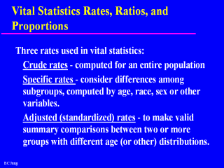 fraction (1/5), or, loosely, as a percentage (20%). RATE. An expression of the frequency with which an event occurs in a defined population. RATIO. The value obtained by dividing one quantity by another. Source: A Dictionary of Epidemiology, Second Edition, edited by J.M. Last for the International Epidemiological Association and published by Oxford University Press, 1988. |