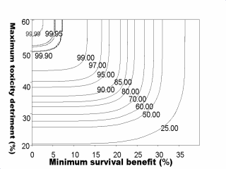 We can combine the 2 curves to obtain a risk-benefit contour which helps us in the decision-making process. |
