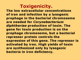 DtxR gene, is activated by iron. The active repressor binds to the tox gene operator and