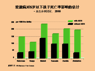 在其它婴儿死亡率较高的国家,5 岁以下孩子的爱滋病死亡率约是非爱滋病死亡率的两倍