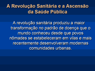 A revolução sanitária do século XIX surgiu das descobertas de Snow, reforçadas pelos trabalhos de outros. William Farr, médico e estatístico, o primeiro compilador de Resumos no recém-criado escritório do English Registrar General; os bacteriologistas, Louis Pasteur e Robert Koch; o patologista-sanitarista Rudolph Virchow; os transformadores sociais e primeiros especialistas em saúde pública, Edwin Chadwick, Lemuel Shattuck, John Simon, e posteriormente muitos outros. Os agrupamentos humanos eram a semente de civilizações, mas nas ausência de condições sanitárias e de higiene adequadas, forma também estufas de doenças. As cidades do século XIX eram locais perigosos, rife com doenças e mortes prematuras. Mais de um quarto de todos os bebês nascidos morria antes de completar um ano, e mais da metade não sobreviviam o suficiente para ter seus próprios filhos. Morriam de infecções respiratórias e gastrointestinais: cólera, febre tifóide, diarréia, difteria, crupe, sarampo, pneumonia e tuberculose. Autor: John Last, Canadá http://www.pitt.edu/~super1/lecture/lec2561.htm *Observação: A revolução sanitária refere-se às mudanças na saúde pública que ocorreram na Europa e na América do Norte no final do século XIX. |