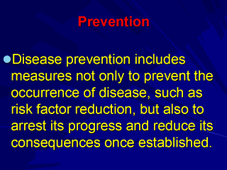 The continuously changing patterns of mortality and morbidity over time indicate that major causes of disease are preventable. Other evidence comes from the geographical variation in disease occurrence within and between countries, and from the observation that migrants slowly develop the patterns of disease of host populations. Disease prevention is considered to be action which usually emanates from the health sector, dealing with individuals and populations exhibiting identifiable risk factors, often associated with different risk behaviours. |