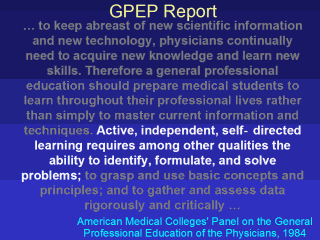 the GPEP report in 1984 : General Professional Education for Physicians stating : ……………