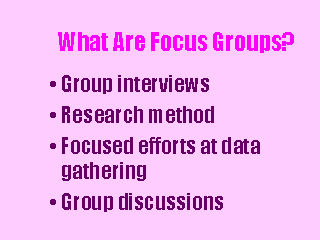 groups are used in many arenas. Typical focus groups will have from 8 to 10 participants