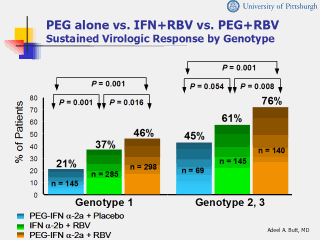 eradication of viral replication in the PEG + RBV group. Even the genotype 1