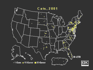 in 2001 with very few rabid ones west of the Mississippi. Cases in cats are