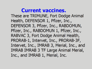 glycoprotein, live vaccinia vector). It is RABORAL V-RG, Merial, Inc. Use in