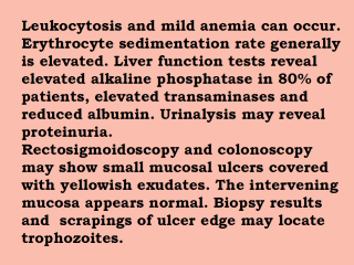 endoscopy in suspected intestinal amebiasis include the following: a) serum