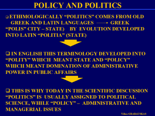 INTERNATIONAL WORDS DESCRIBES "POLITICS" AS STATE MANAGEMENT ART, AS THEORY