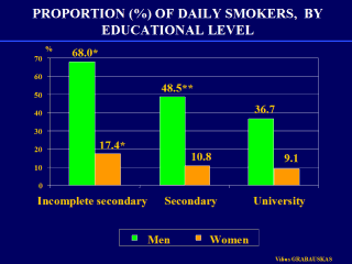 compared with secondary and university education ** - p<0.05, if compared with incomplete secondary and university education |