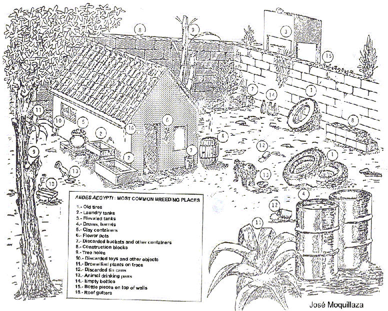 toilets fairly represent containers attractive for oviposition. Tree holes, rock holes and