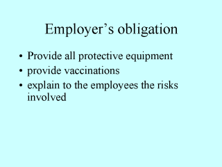 Still the employer is obliged to provide all protective equipment, to provide vaccinations and to explain to the employees the risks involved. |