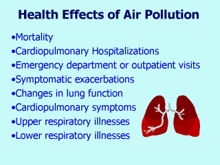 | The proved health effects of air pollution on cardio-respiratory health include those on this figure (Commitee of the environmental and occupational health assembly of the ATS, 1996) |