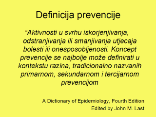 John Last je legendarna figura na području prevencije, mnogima poznat kao "otac prevencije" John Last imao je akademski položaj pri Britanskom vijeću za medicinska istraživanja u Londonu, na sveučilištima Sydneya, Vermonta (USA) i Edinburgha; bio je profesor epidemiologije i javnog zdravstva na sveučilištu Ottawa od 1969. Bio je urednik 11., 12. i 13. izdanja Public zdravlj and Preventive Medicine, te počasni urednik 14. izdanja ("Maxcy-Rosenau-Last"); urednik 1., 2., 3. i 4. izdanja Dictionary of Epidemiology, i author 1. i 2. izdanja Public zdravlj i Human Ecology. |