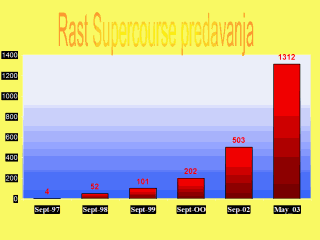 Bili smo vrlo uspješni u dobavljanju sjajnih predavanja. Skupljeno je preko 1200 predavanja. Supercourse trenutno ima gotovo 10000 članova u 150 zemalja iz cijelog svijeta. Želite li dobiti CD s 1038 predavanja o prevenciji i javnom zdravstvu, pošaljite e-mail razvojnom timu Supercourse-a na adresu: |
