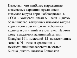 штамом Edmonston. Интересно отметить, что N- ген