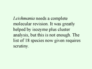 aethiopica 2/ L. donovani, 3/ L. infantum, 4/ L. major, 5/ L. amazonensis, 6/ L. enriettii, 7/ L. mexicana, 8/ L. pifanoi, 9/ L. tropica, 10/ L. braziliensis, 11/ L. colombiensis, 12/ L. equatorensis, 13/ L peruviana, 14/ L. guyanensis, 15/ L. panamensis, 16/ L. shawi, 17/ L. lainsoni 18/ L. naiffi |