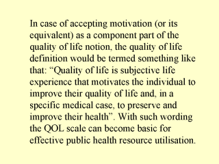 the QOL of a prosperous healthy person taking care of his/her health would be assessed as