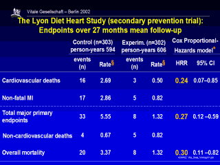 Rates shown are per 100 patient-years of follow-up Source: Lorgeril M et al. Lancet 1994; 343: 1454–59 |