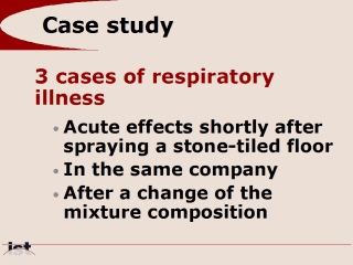 | Three cases of occupational exposure have been investigated to assess the exposure levels undertaken by the workers. The three cases occurred in the same company within a two-month period. |