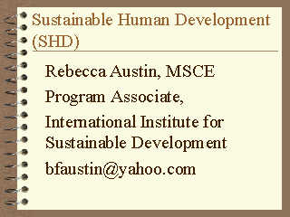Sustainable Human Development are: *To provide an overview of what sustainable human development is. *To offer some examples of field guides for gathering information about a particular community. *To provide a way of monitoring progress towards obtaining sustainable human development. *To remind all involved that this is not necessarily an easy process. It can be time consuming and will inevitable result in conflict. |