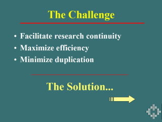 1. Facilitate research continuity to ensure use of standard research methods and concepts to permit replication and extension of studies, while 2. maximizing efficient use of both human and capital resources, and 3. minimizing duplication of work by researchers and programmer analysts |