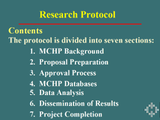 sections contain information specific to starting research projects at MCHP, the Protocol