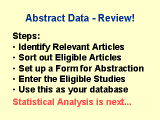 analyses, make sure you have the following: All your relevant articles on hand. You have prepared a format to enter the studies. You have tabulated the results of all eligible studies systematically. Now proceed with the statistical analysis. |