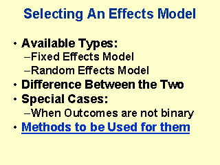 Effects Model: Answers the question whether the studies included in the