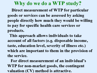 used in health economics to measure WTP for new procedures or products. |
