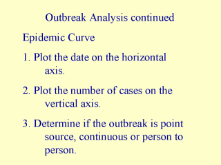 Point source outbreak: By determining the distance (or time) between the suspected exposure and the peak of the outbreak, an incubation period can be estimated. Based on the known incubation periods of infectious agents, it may be possible to determine the causative agent. |
