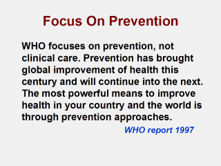 WHO’s focus has been on the most cost-effective means to improve health, prevention.
