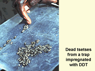 poverty. Note that infected flies usually occur at 1/1,000 flies. Many other different techniques are also PARTIALLY EFFECTIVE against tsetses